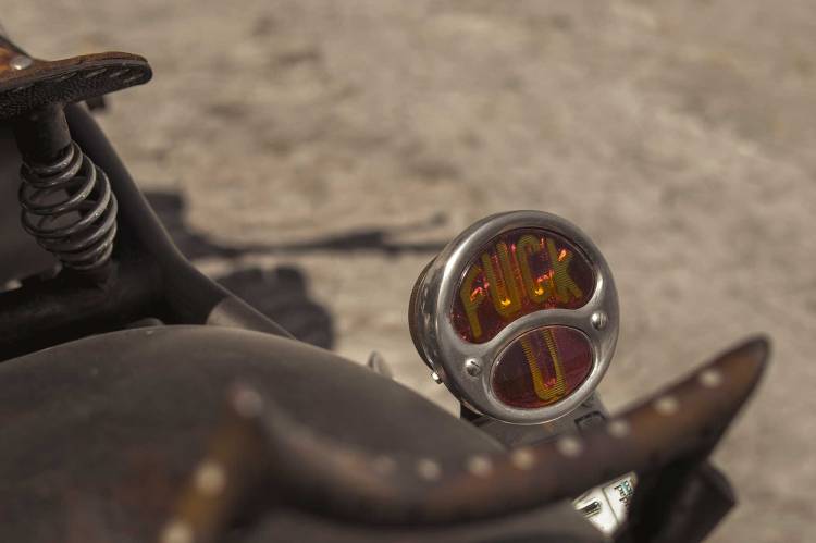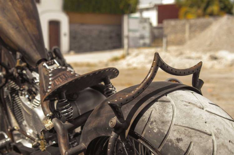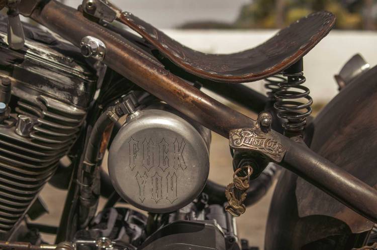 Imagina esto: una tarde jodidamente calurosa en un terreno baldío, un grupo de locos bebiendo cerveza y charlando casi a gritos cuando la «Fuck You» ruge con su motor de más de 2000 Cc que hace callar el bullicio. Todos la admiran, la respetan, no es solo el motor, no son solo los accesorios y detalles, cuando conoces a Miguel Aguinaga, te das cuenta que ese rugido y esa presencia solo se consigue con la pasión y con la entrega con la que construye sus motocicletas.